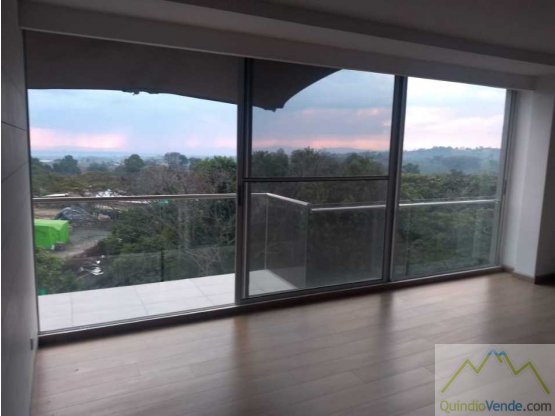 Ofrecemos para la venta apartamento con hermosa vista a la cordillera, ubicado al norte de Armenia a la salida hacia Pereira. Doble altura, area de 119 mts2 mas 35 mts de altillo y parqueadero cubierto. La habitacion principal con estudio o sala de TV, vestier, baño con vista a la cordillera, jacuzzi con masajes y luces . 2 alcobas con closet, baño social, cuarto de ropas, cocina sala comedor integrada con balcon y cortina electrica. El condominio cuenta con: porteria, vihila cia privada, piscina climatizada, sauna, turco, jacuzzi, sendero ecologico, cancha sintetica, gimnasio, juegos infantiles, ajedrez gigante y parqueadero de visitantes.